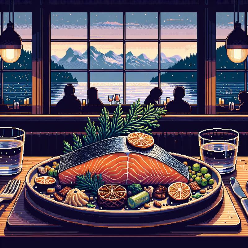 The salmon arrives like a whispered memory of rivers. At Canlis, perched above Seattle’s dark water, the dish doesn’t fight to impress—it waits, radiant and assured. Alder-smoked, it carries the scent of earth warmed gently by fire, and the flesh yields at the press of a fork, as though it too chose to be part of the evening. The supporting chorus—the fermented garlic, the spruce tips, the shell of crisped skin—each note clear, without jostling for the center.